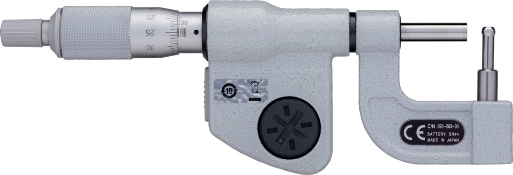 細い円筒形状ワークの厚み測定に便利な棒球面マイクロメータです。